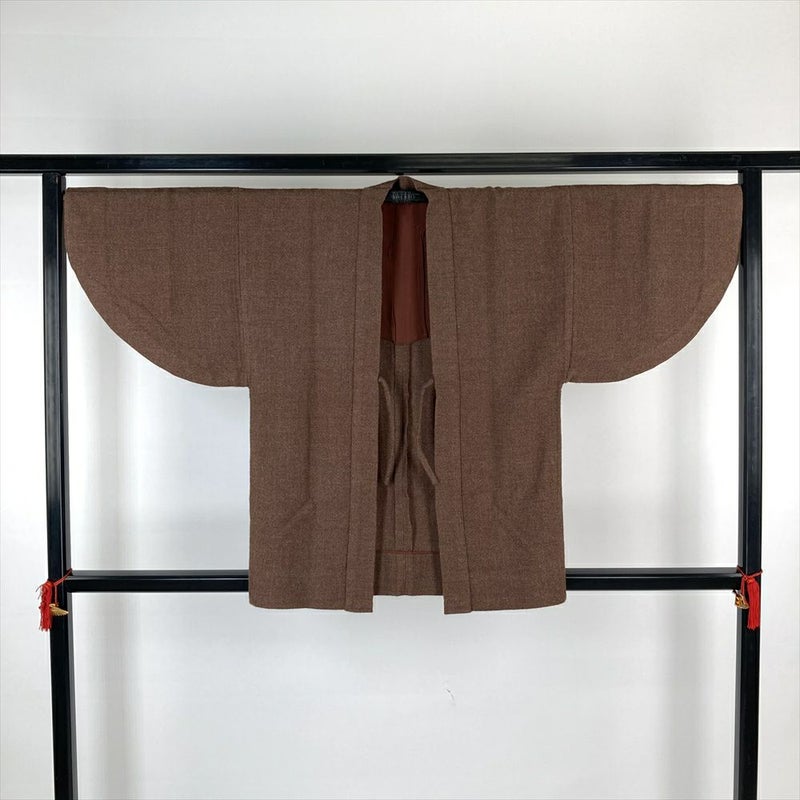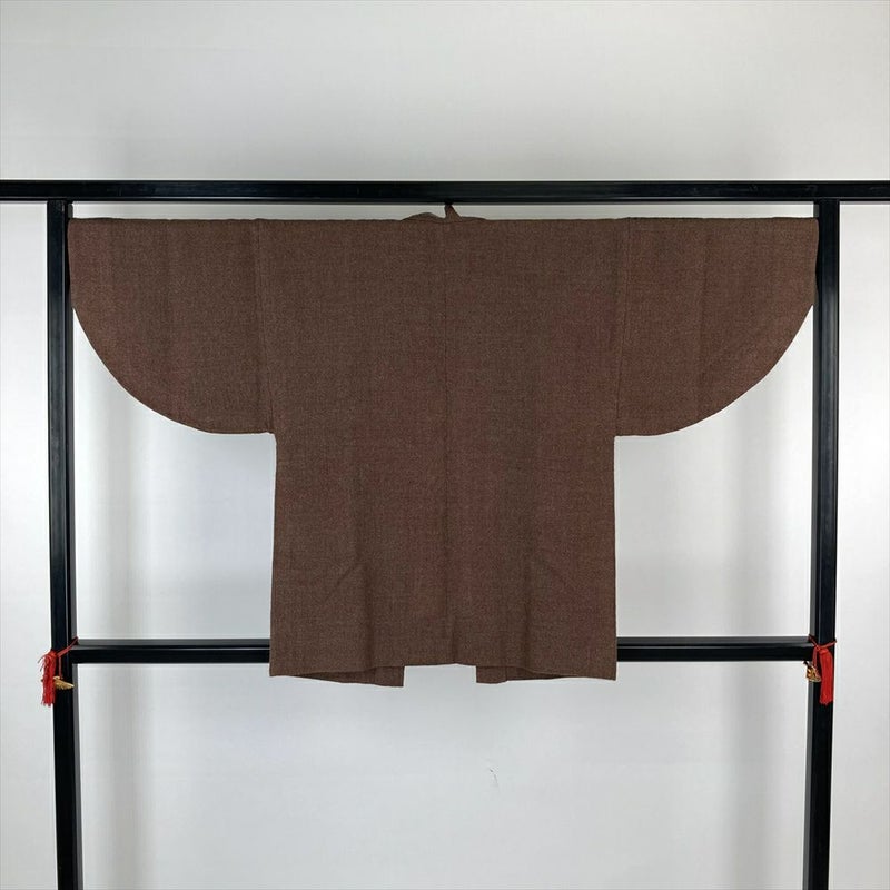 (中古)単衣道中着 茶 無地 肩すべり 未洗い ひとえ【身丈】81cm 【裄丈】68.5cm
