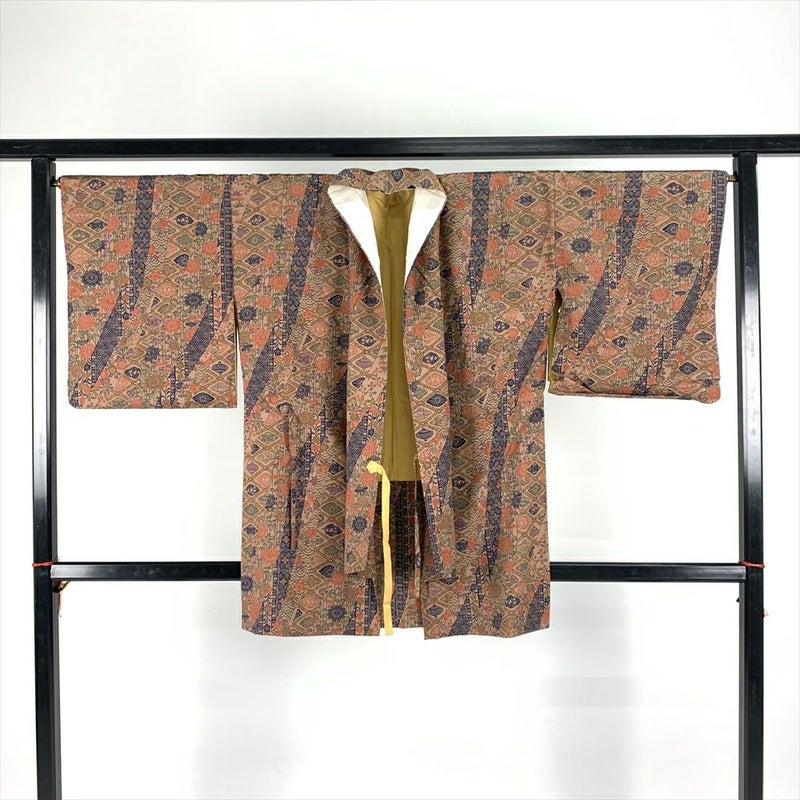 色、柄によって用途が変わります。塵除けや防寒用として、外出時にご着用ください。衿裏にスナップのサビ汚れや茶色い汚れ、八掛に茶色い汚れが見られますが、着用には問題のない程度と考えられます。