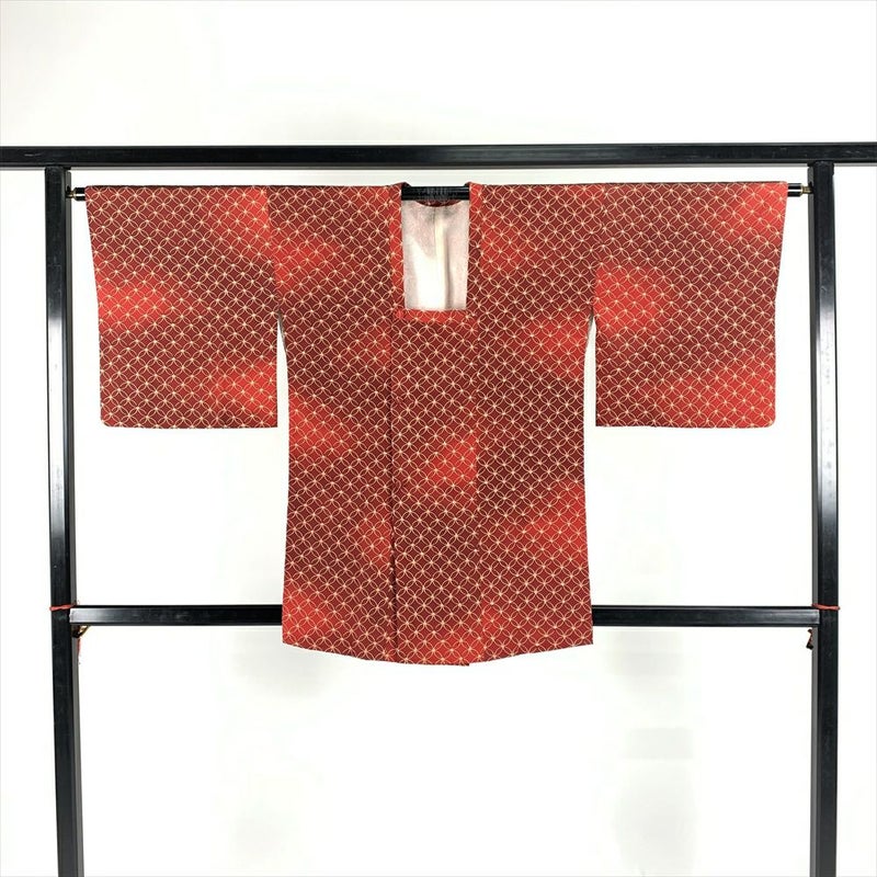 (中古)道行コート 赤 袷 七宝柄 ぼかし 未洗い【身丈】82.5cm【裄丈】66.5cm
