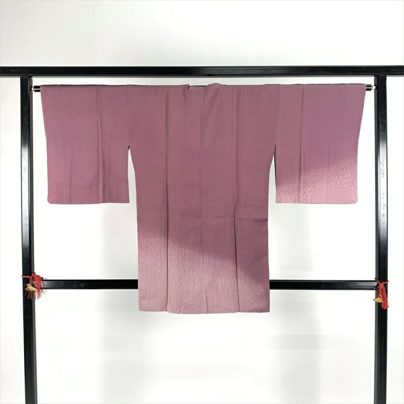 (中古)道行コート 紫 袷 縦縞 無地感 ぼかし シンプル 未洗い【身丈】87.5cm【裄丈】65cm