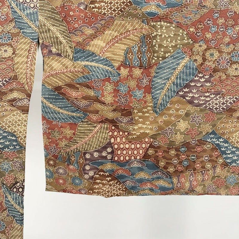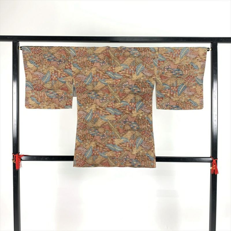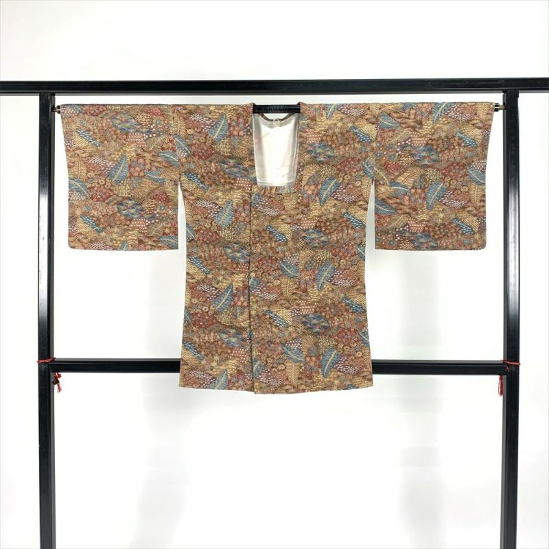 (中古)道行コート 茶 袷 切りばめ 季節花 古典柄 未洗い【身丈】83.5cm【裄丈】66.5cm