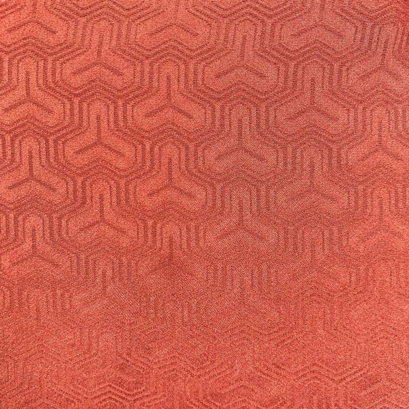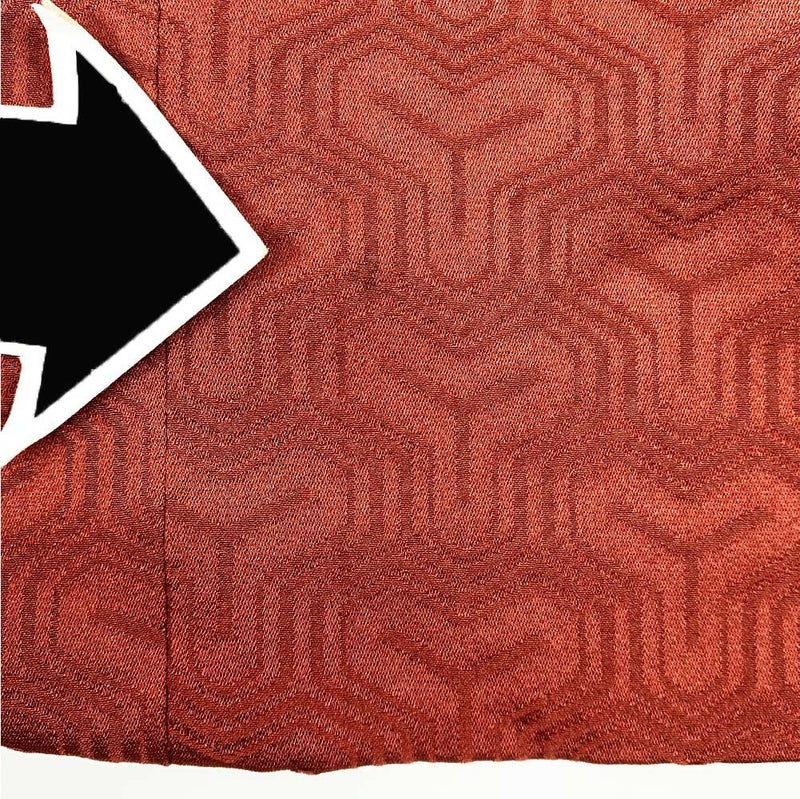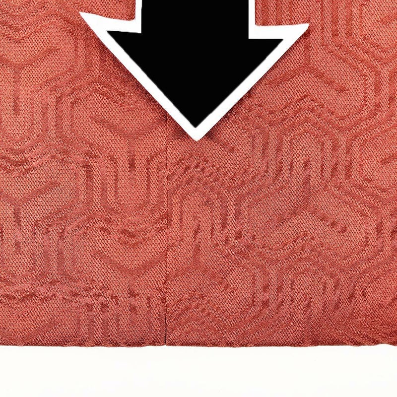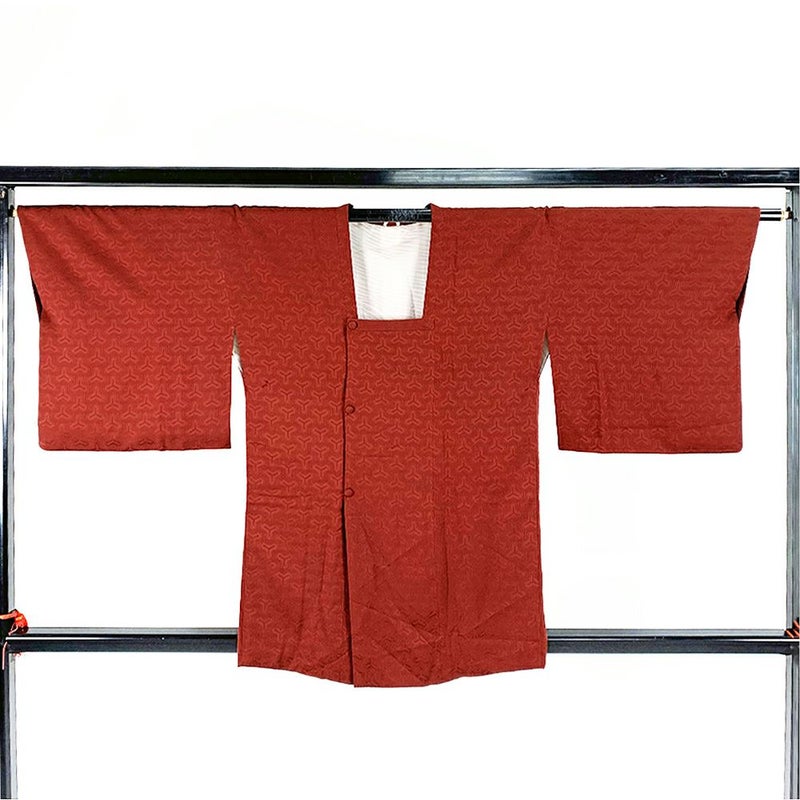 レンガ色の地に毘沙門亀甲柄の道行コートです。下前にシミ汚れ、裏に黒い汚れが見られますが、着用には影響のない程度と思われます。