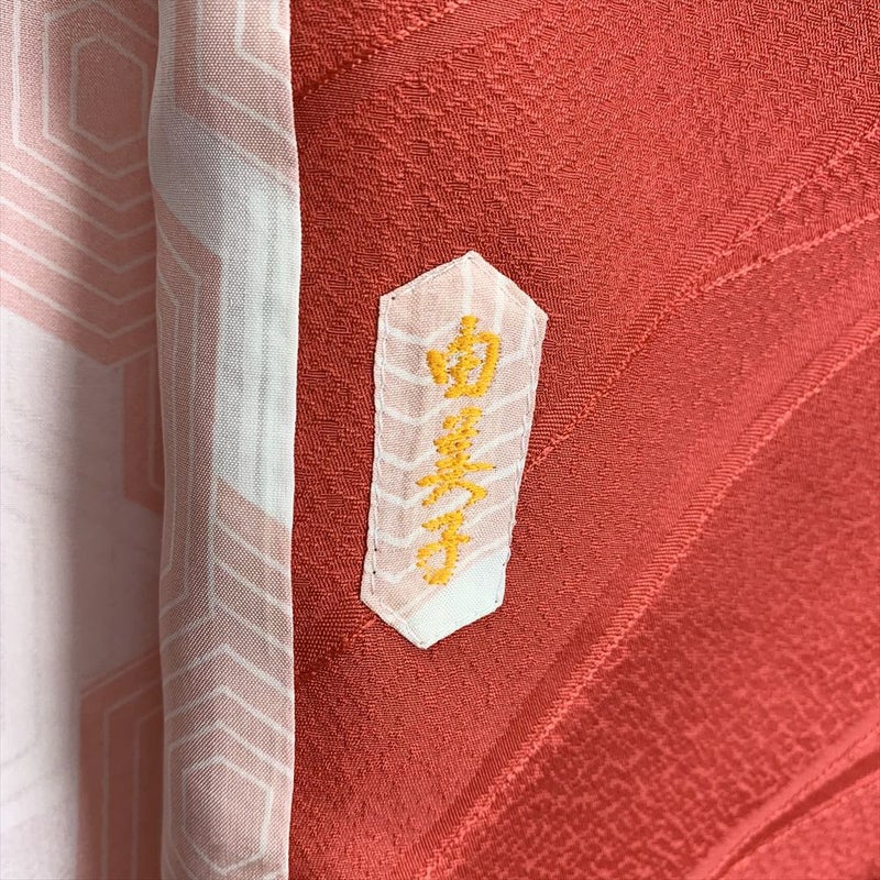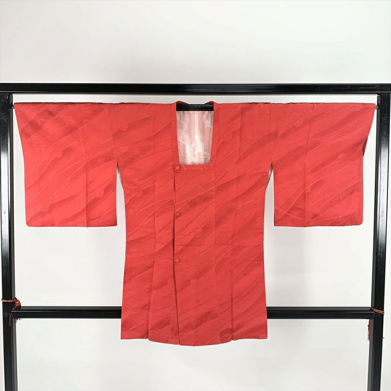 (中古)道行コート 赤 袷 地紋織り 未洗い【身丈】87.5cm【裄丈】69.5cm