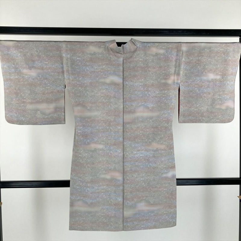 薄灰色の地に、三色の霞が幻想的に広がる、リメイク道中着です。