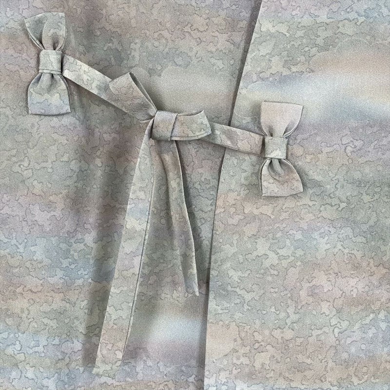 (中古) リメイク道中着 薄灰色 グレー カジュアル ちりめん 染め 霞 斑模様 袷【身丈】100.5cm【裄丈】69cm