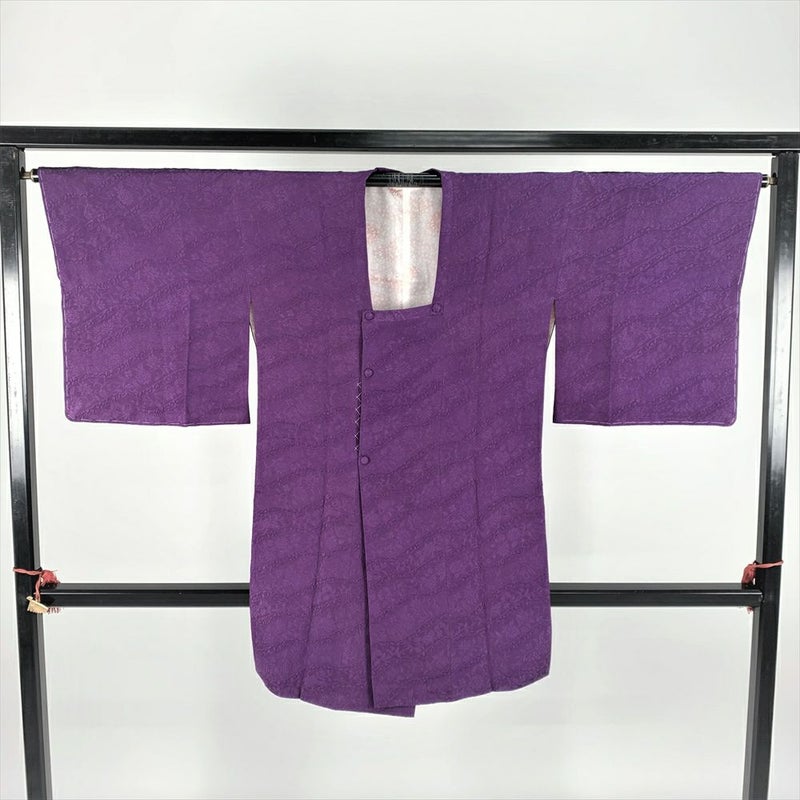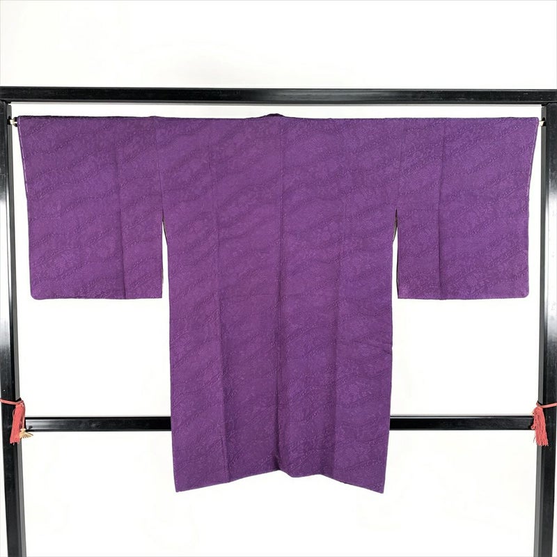 (中古)道行コート 紫 袷 総柄 地紋織り 唐花 未洗い【身丈】93.5cm【裄丈】66.5cm