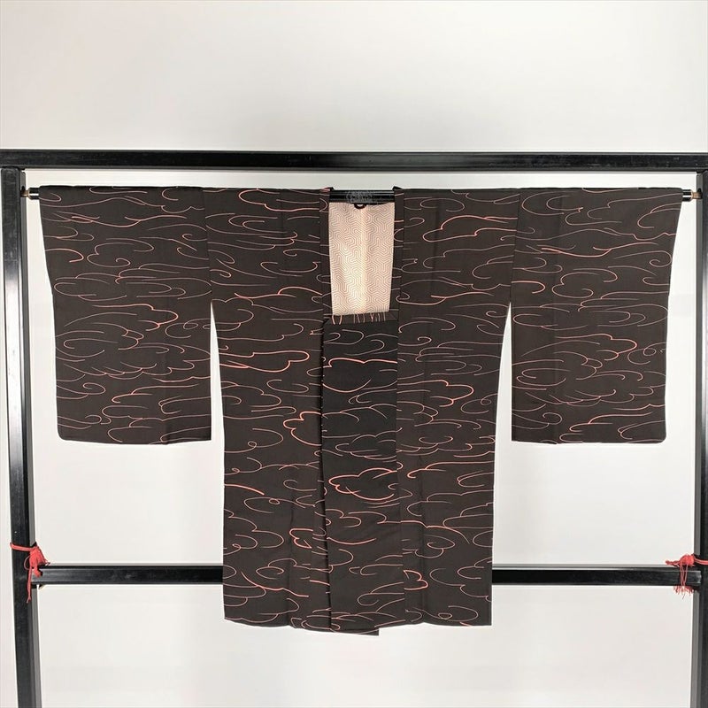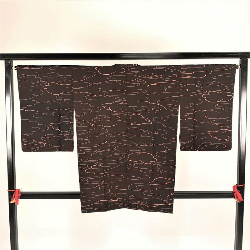(中古)道行コート 茶 総柄 雲 袷 未洗い【身丈】85.5cm【裄丈】65.5cm