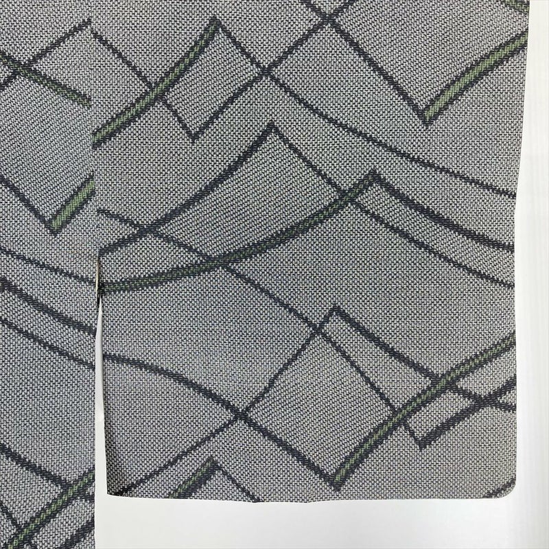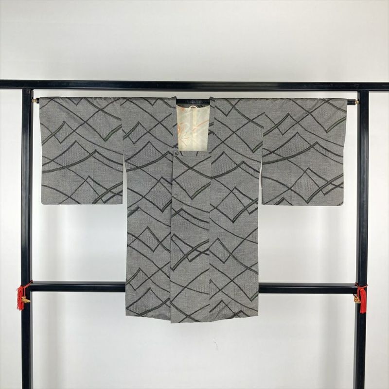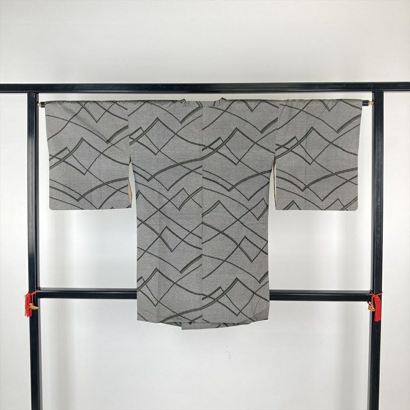 【色柄】黒 紬地 幾何学模様 絹 袷 未洗い