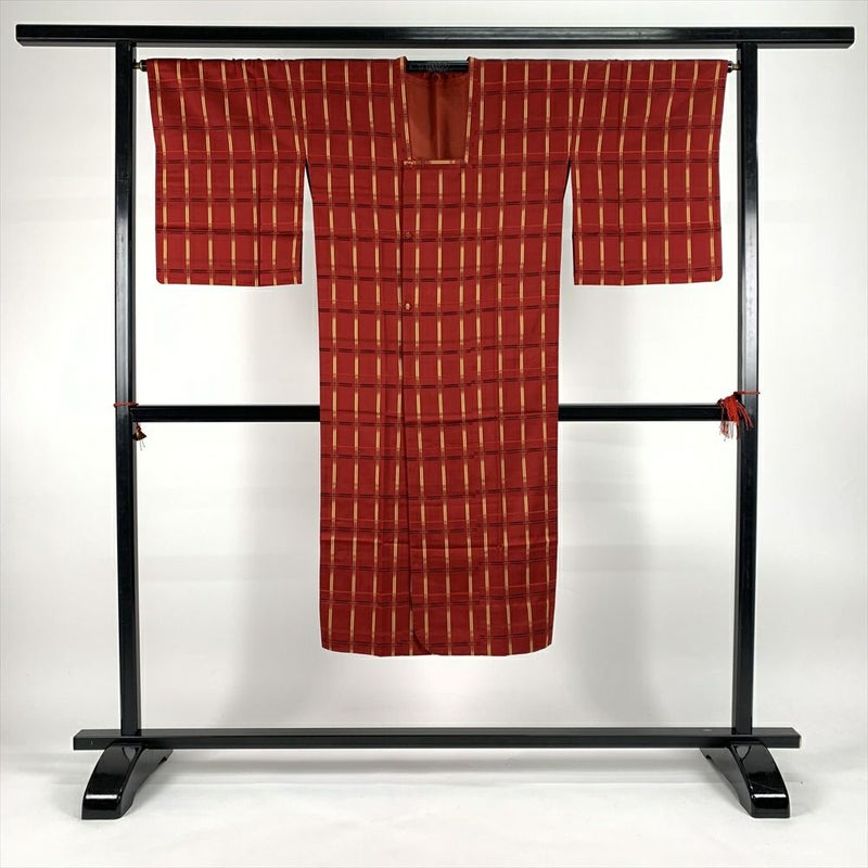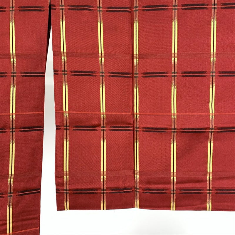 (中古)雨コート 赤 単衣 格子アレンジ 未洗い ひとえ【身丈】130.5cm【裄丈】67cm