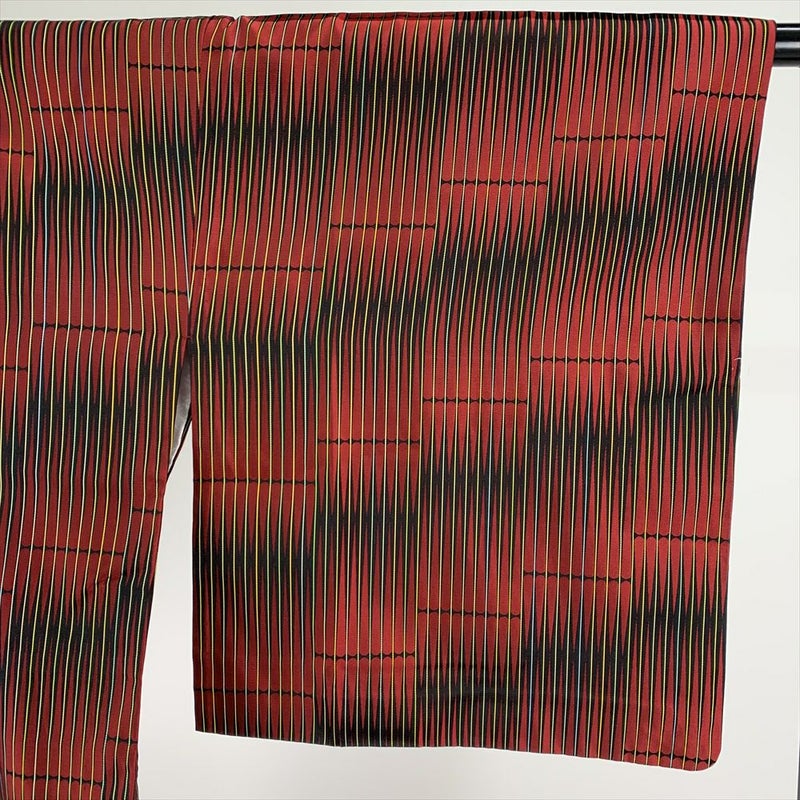 【色柄】赤 草 縦縞 ストライプ レトロ