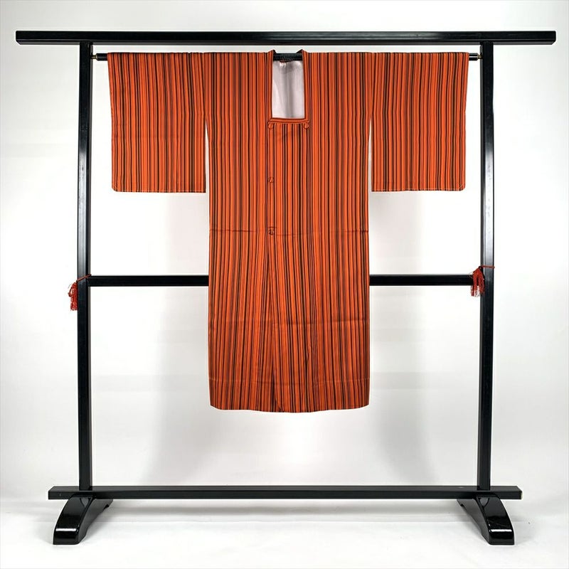 (中古)雨コート オレンジ 縦縞 ストライプ 未洗い【身丈】122.5cm【裄丈】66cm