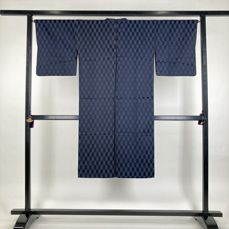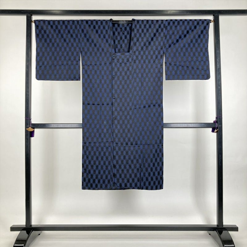 (中古) 雨コート 紺 黒 変わり亀甲 単衣 未洗い【身丈】123.5cm【裄丈】65cm