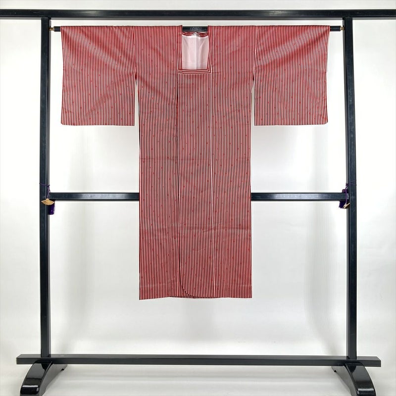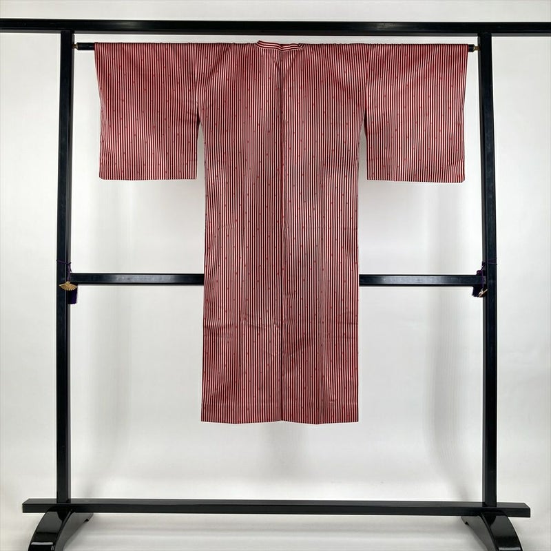(中古) 雨コート 赤 黒 白 縞 変わりドット 単衣 未洗い【身丈】121.5cm【裄丈】64cm