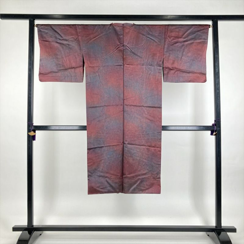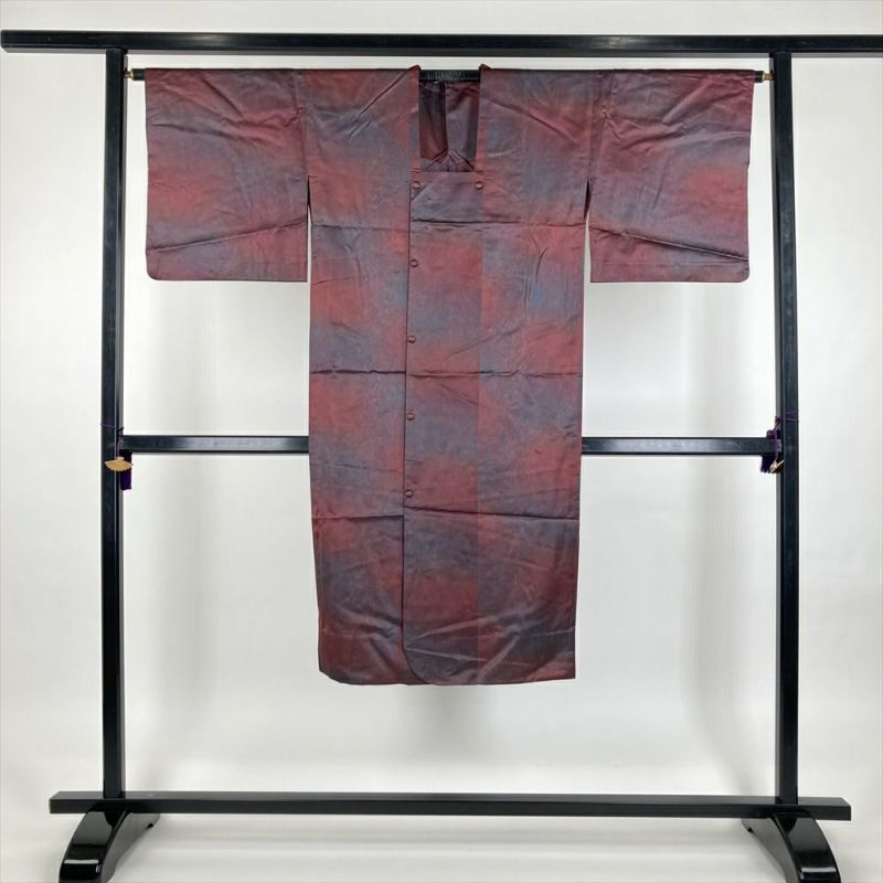 (中古) 雨コート 灰色 紅梅 グラデーション 単衣 未洗い【身丈】124cm【裄丈】65.5cm