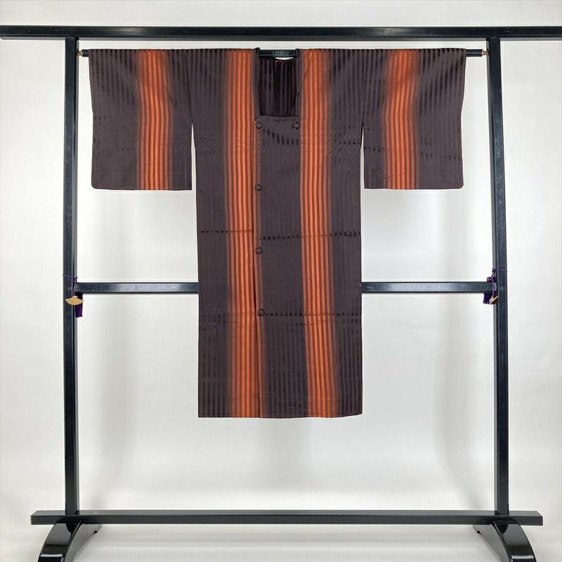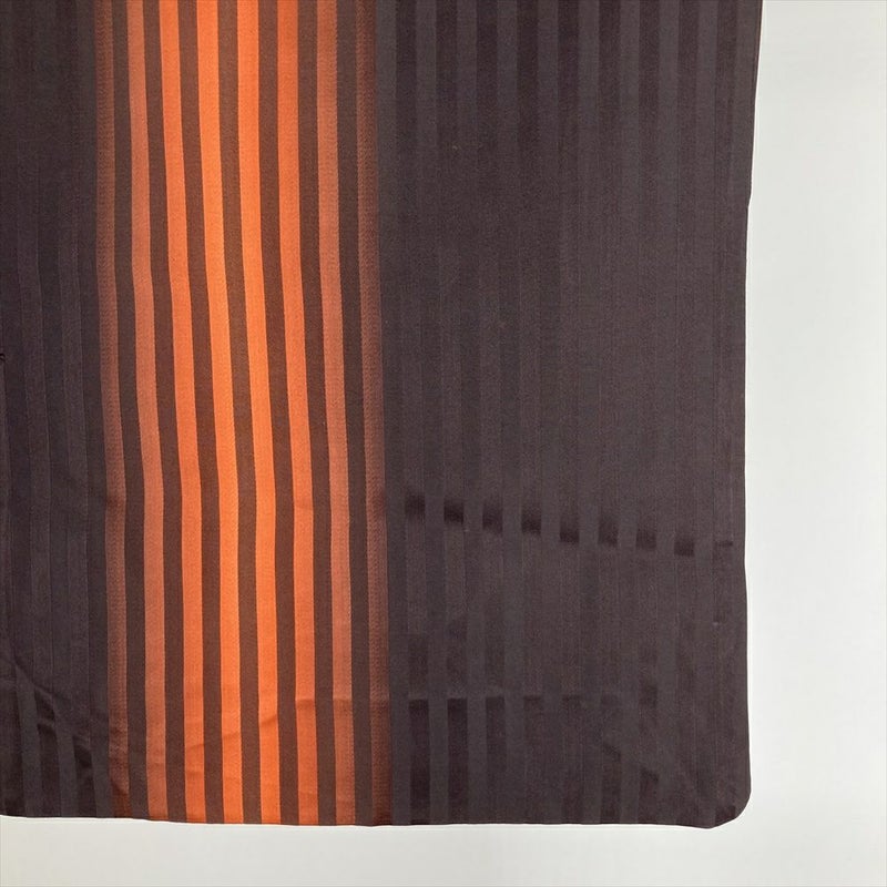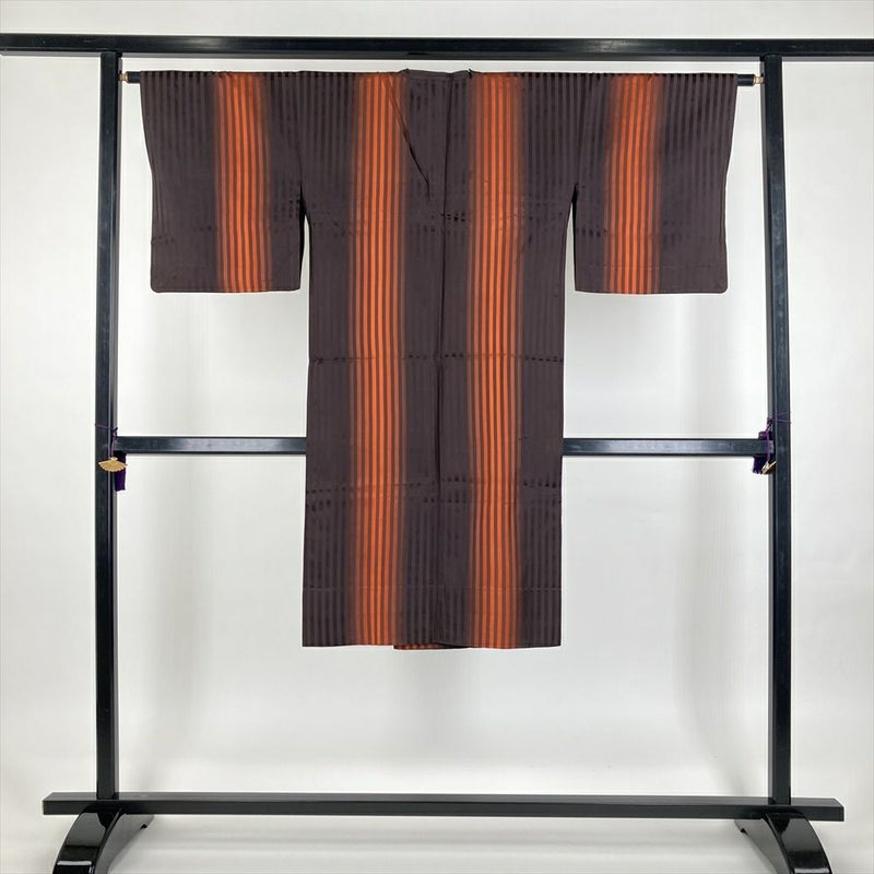 (中古) 雨コート 柿色 オレンジ 焦げ茶 縞 グラデーション 単衣 未洗い【身丈】117cm【裄丈】64cm