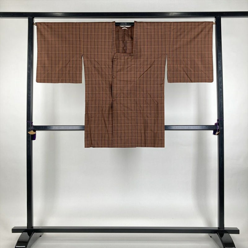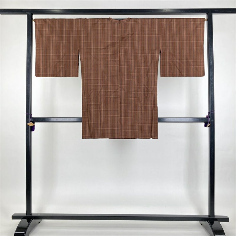 (中古) 雨コート 茶 薄橙 翁格子 単衣 未洗い【身丈】89cm【裄丈】66cm