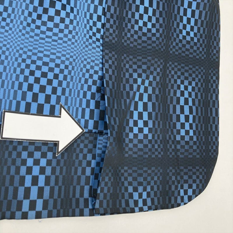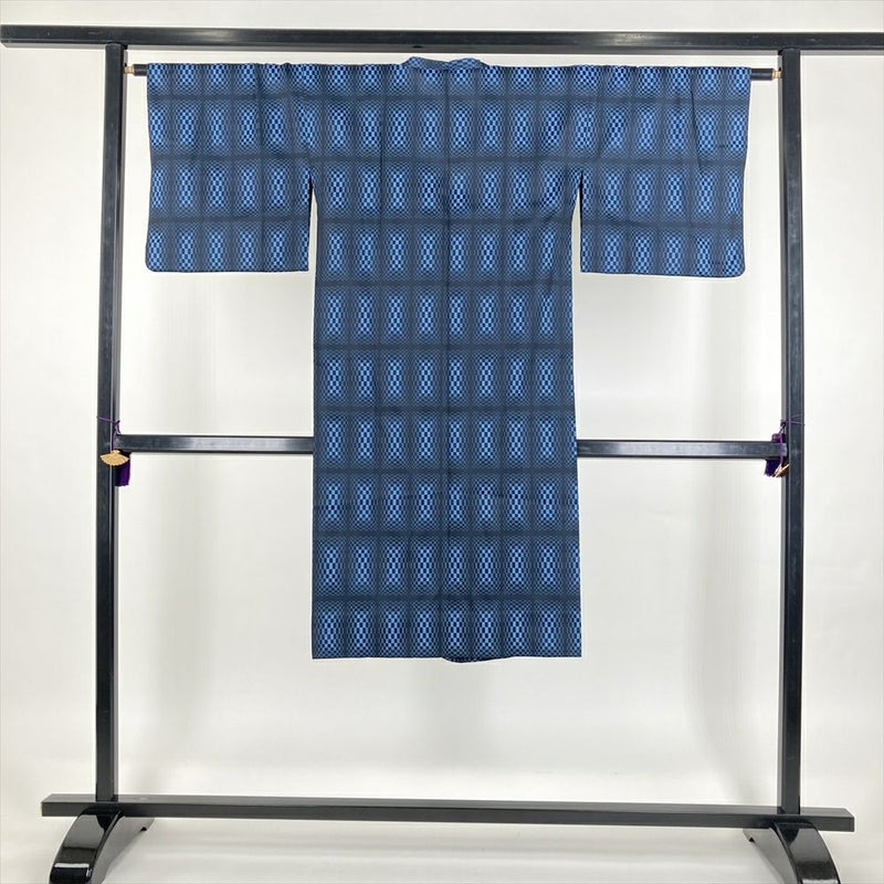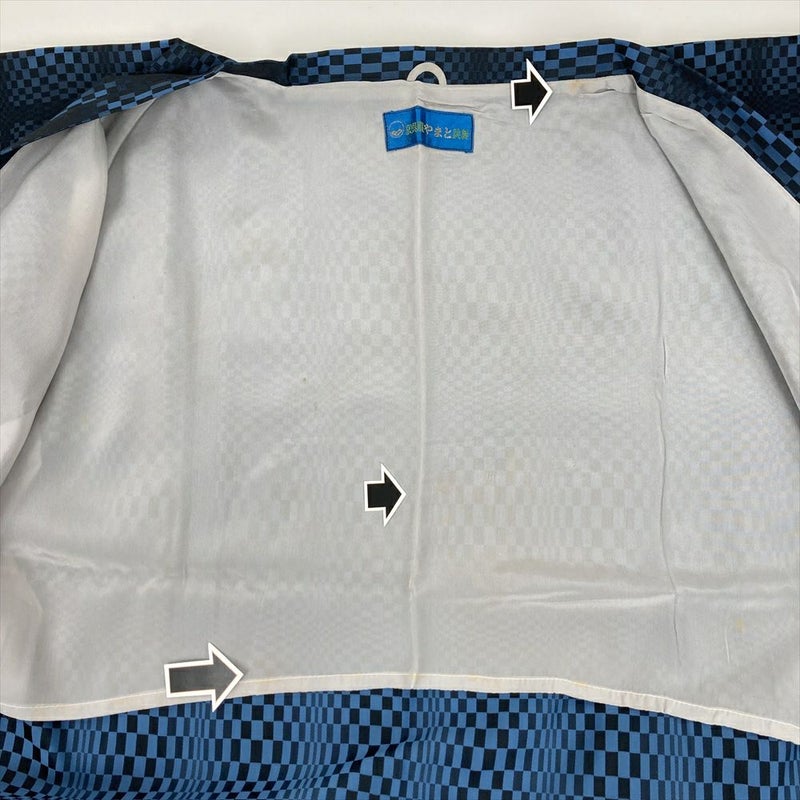 (中古) 雨コート 濃紺 空色 変わり市松 単衣 未洗い【身丈】119.5cm【裄丈】64cm