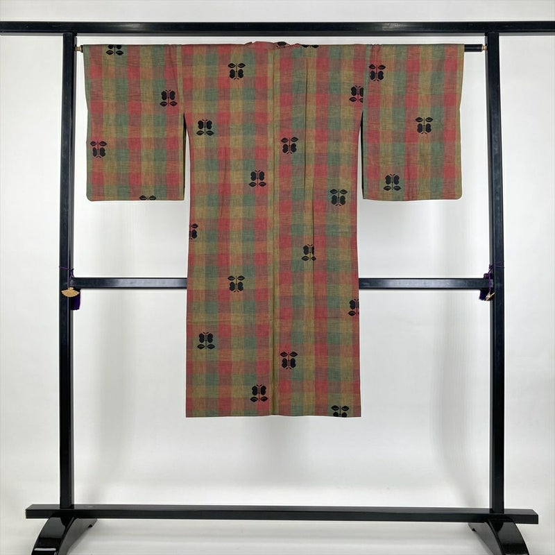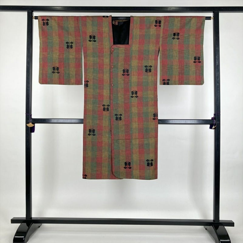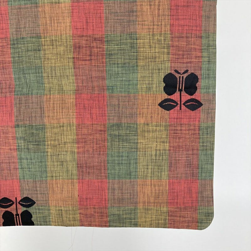 (中古) 雨コート マルチカラー 市松 遠州椿 単衣 未洗い【身丈】119cm【裄丈】64cm
