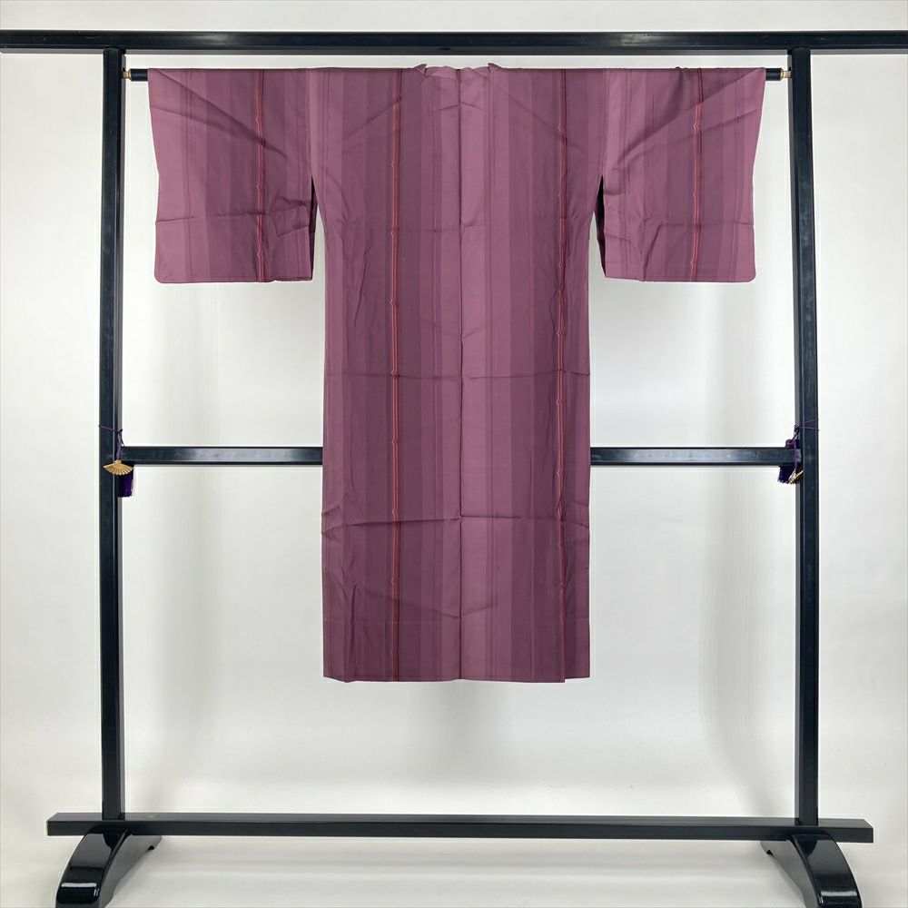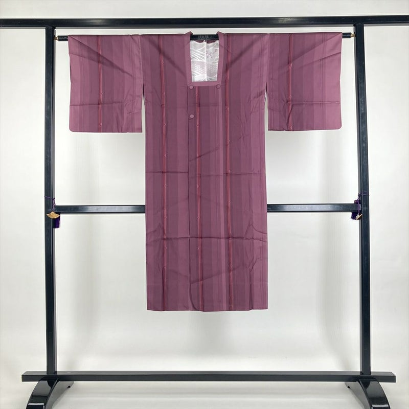 (中古) 雨コート 赤紫 鰹縞 単衣 未洗い【身丈】120cm【裄丈】64cm