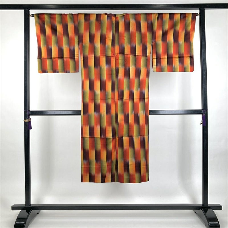 (中古) 雨コート マルチカラー 絣調 グラデーション 単衣 未洗い【身丈】129.5cm【裄丈】66cm