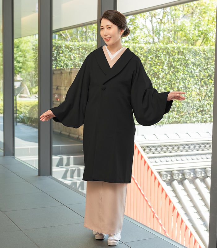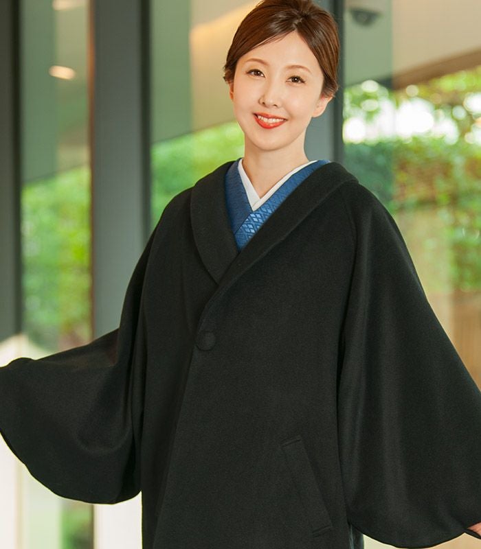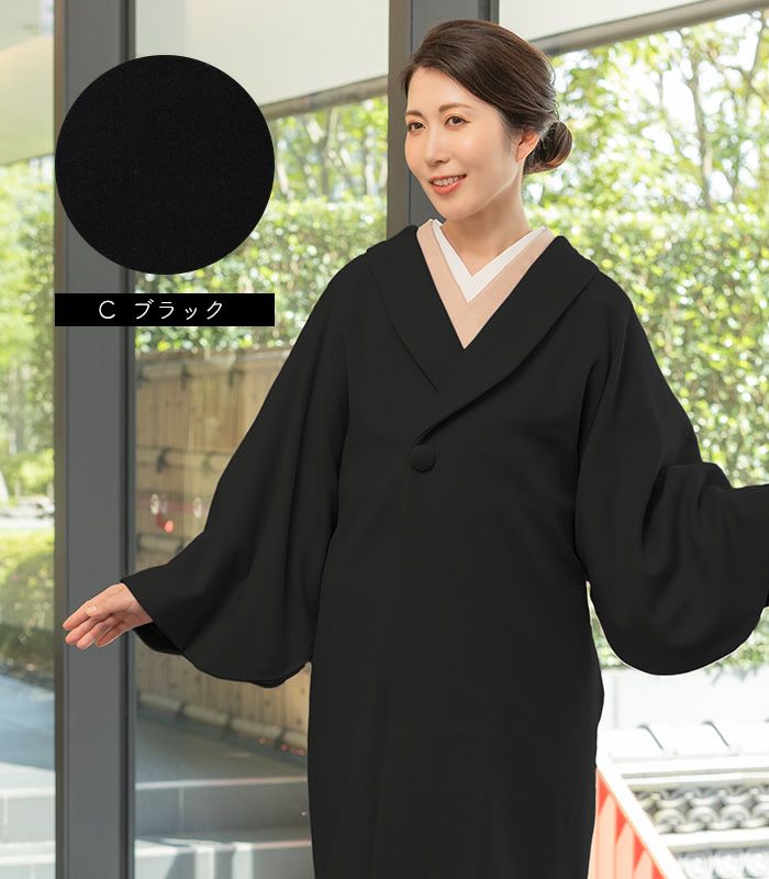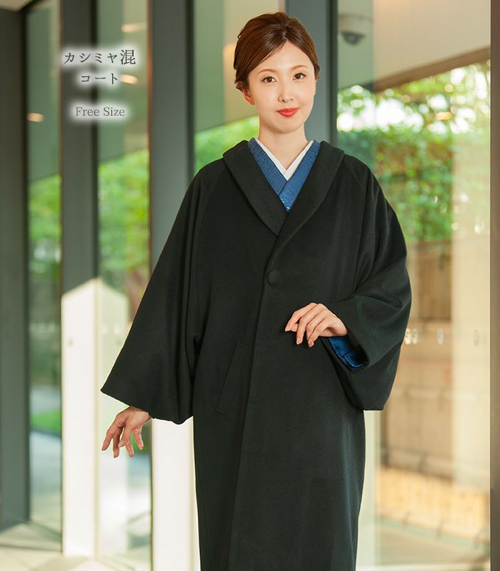 他の画像を見る (新品)カシミヤ混コート(カシミヤ30%)(ブラック) 都粋 通常価格 ¥ 107,800 のところ ¥ 74,800 税込 ウールコート コート 冬コート 着物 へちま衿 フリーサイズ シンプル 無地 あったか ポケット 黒 ブラック お気に入りに登録する