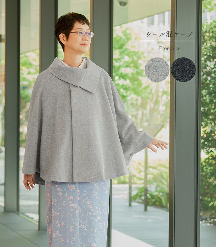 他の画像を見る (新品)ウール混ケープ 都粋 通常価格 ¥ 52,800 のところ ¥ 41,800 税込 コート 冬コート 着物 ケープ ポンチョ フリーサイズ シンプル 無地 あったか スナップボタン くるみボタン ポケット お気に入りに登録する