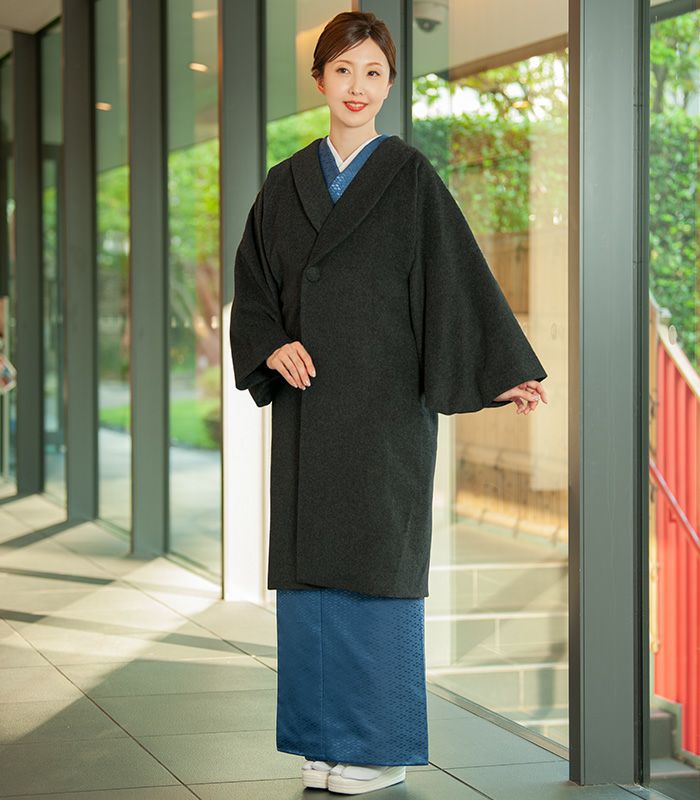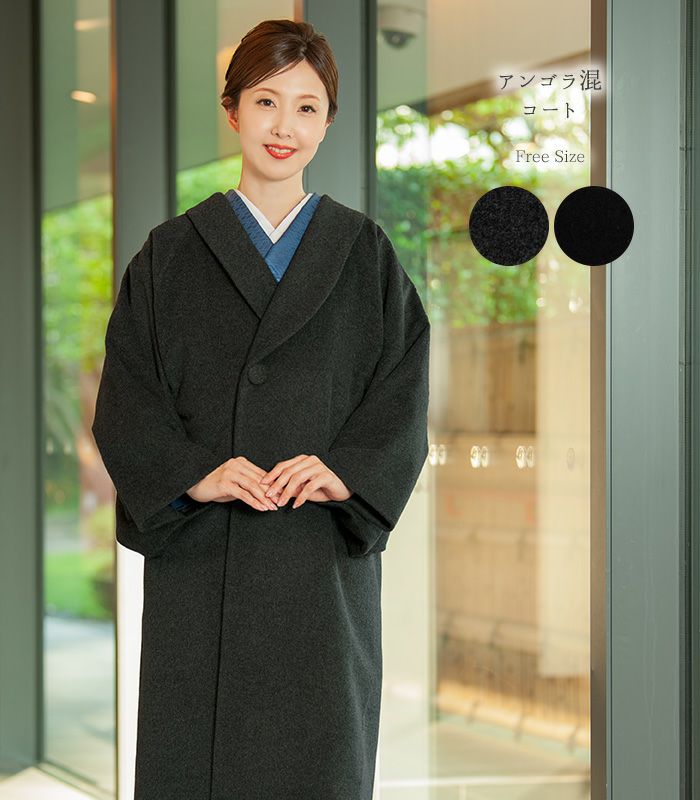 他の画像を見る (新品)アンゴラ混コート(アンゴラ60%) 都粋 通常価格 ¥ 85,800 のところ ¥ 63,800 税込 コート 冬コート 着物 へちま衿 フリーサイズ シンプル 無地 あったか グレー ブラック スナップボタン お気に入りに登録する