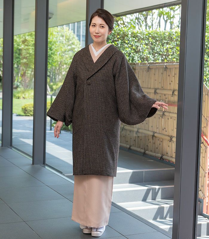 他の画像を見る (新品)ツイードコート(ブラウン) 都粋 通常価格 ¥ 63,800 のところ ¥ 43,780 税込 コート 冬コート 着物 へちま衿 フリーサイズ シンプル あったか 茶色 ブラウン くるみボタン スナップボタン お気に入りに登録する
