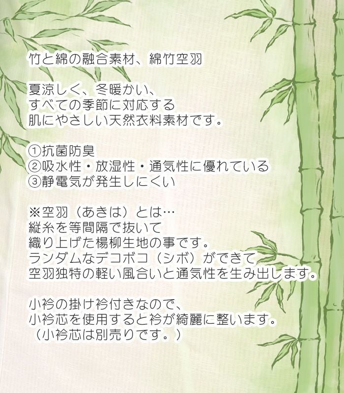 他の画像を見る (新品)バンブー肌着 都粋 ¥ 6,380 税込 バンブー肌着 (白)(M・L) 和装 肌着 肌襦袢 着物 きもの 白 ホワイト 竹 空羽 楊柳 抗菌防臭 吸水性 放湿性 通気性 静電気 オールシーズン 天然素材 掛け衿 肌着類 お気に入りに登録する