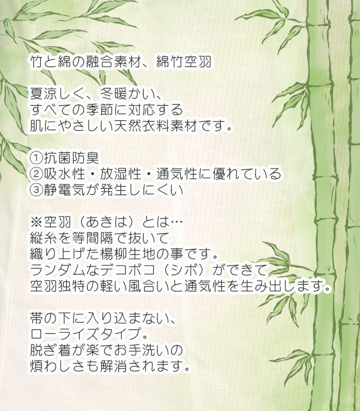 他の画像を見る (新品)バンブーステテコ 都粋 ¥ 6,380 税込 バンブーステテコ (白)(M・L) 和装 肌着 着物 きもの インナー 白 ホワイト 竹 天然素材 オールシーズン ローライズ 抗菌防臭 吸水性 放湿性 通気性 静電気 楊柳 肌着類 お気に入りに登録する