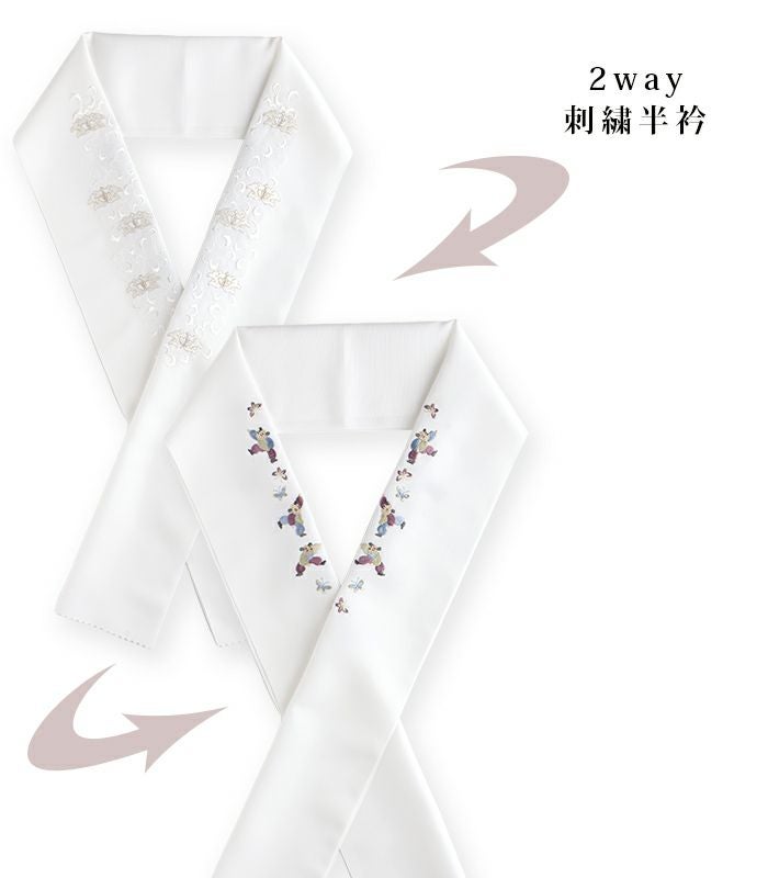 他の画像を見る (新品)【都粋オリジナル】ひみつの半襦袢DX(塩瀬半衿) 都粋 ¥ 8,580 税込 〜 ¥ 税込 半襦袢 白 ホワイト 塩瀬半衿 筒袖 高島クレープ 衿がきれいに抜ける 替え袖が付けられる 衿幅狭い お気に入りに登録する