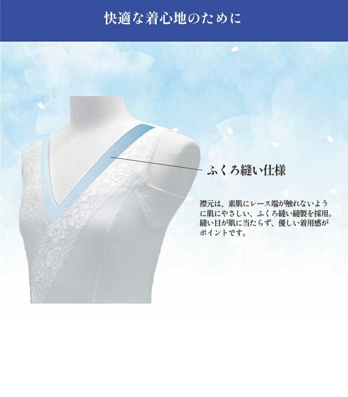 お肌にレース端が触れないようにふくろぬい縫製。