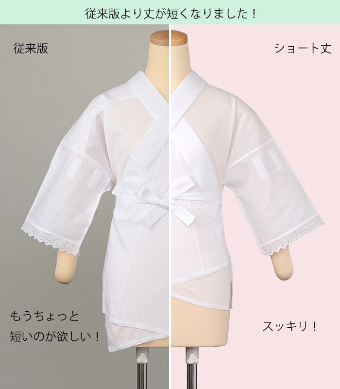 「ひみつの半襦袢デラックス」の着心地はそのままに、薄い着物の中でももたつきを軽減するようショート丈を作りました。