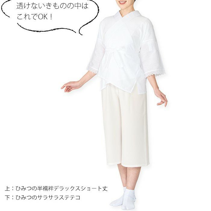 また、当社製品「ひみつのステテコ」より丈を短めにし、裾レースをなくすなど、汗ばむ季節の快適さにこだわりました。