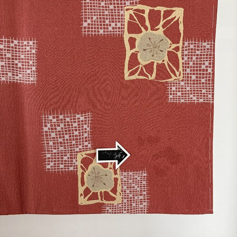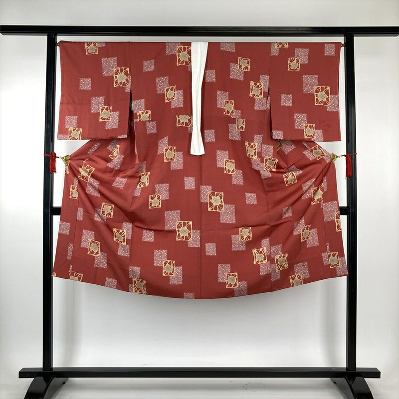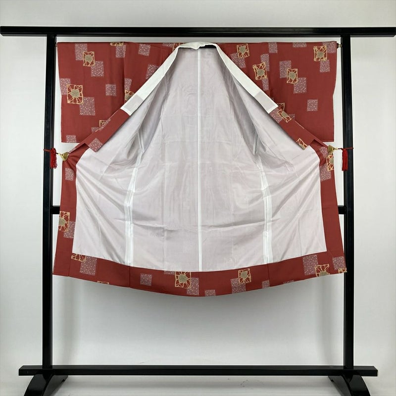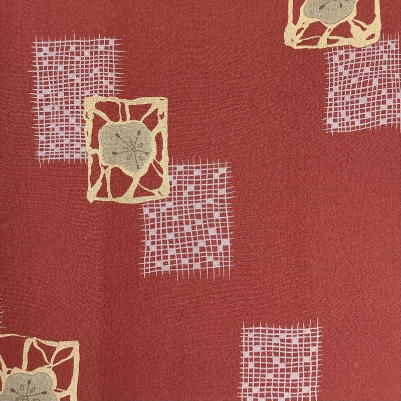 (中古)リユース着物 長襦袢 小豆色 梅 赤茶 格子 絹 【身丈】120.5cm 【裄丈】66cm 未洗い