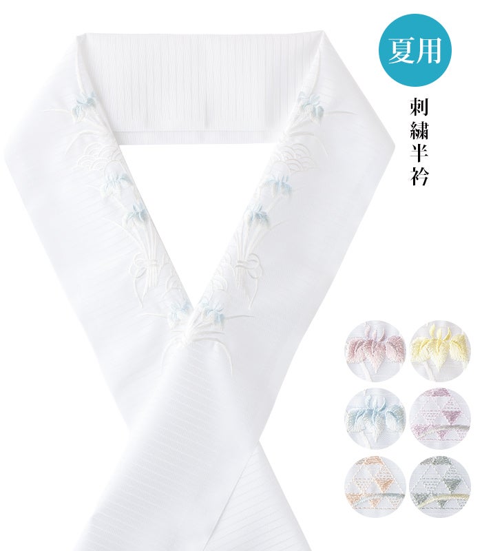 淡いパステルカラーがさわやかな夏用の半衿です。
