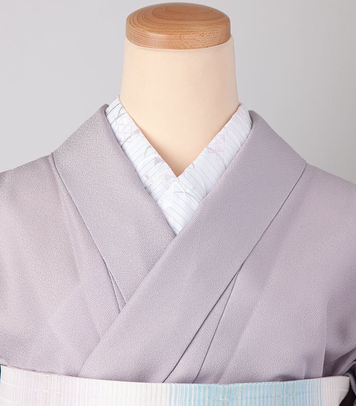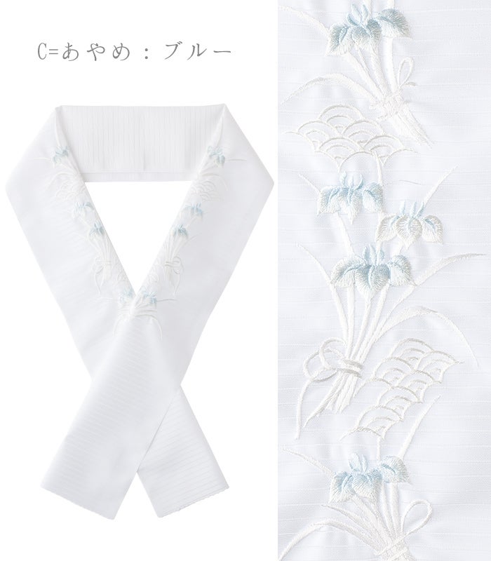 あやめと青海波、うろことつゆ芝が衿元を彩ります。
