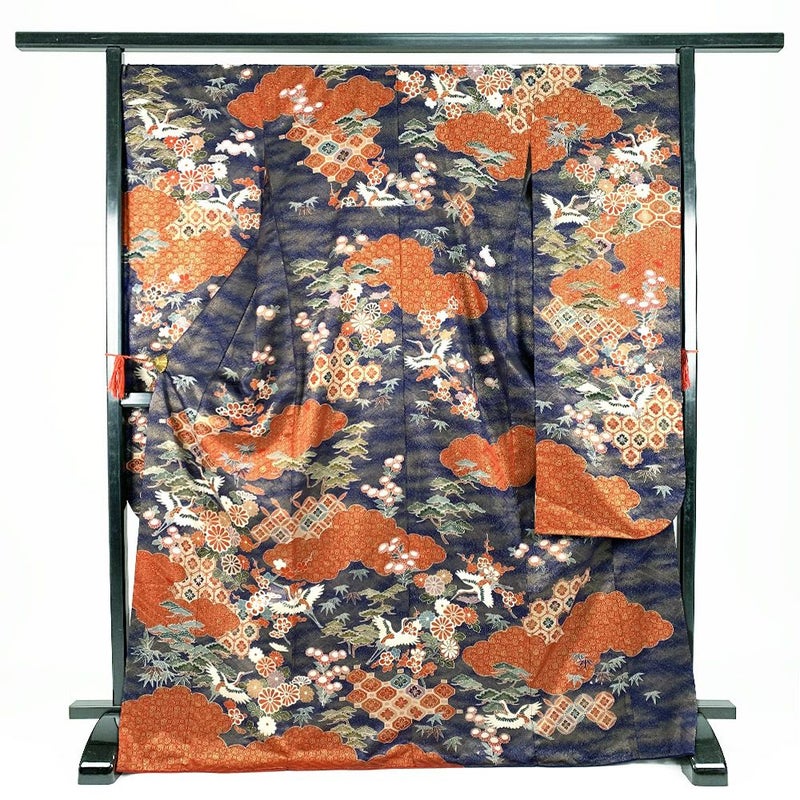 瑞雲は、めでたいことの前兆とされる吉祥の雲。そこに舞う鶴は、長寿と夫婦円満の象徴。これらの吉祥文様が組み合わさることで、着る人の幸せを願う、格調高い一着となっています。