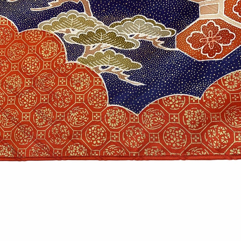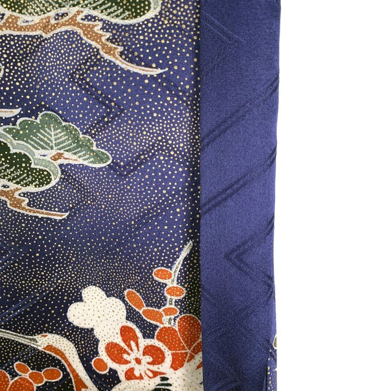 【色柄】青地 松 鶴 七宝柄 雲 草花 共八掛