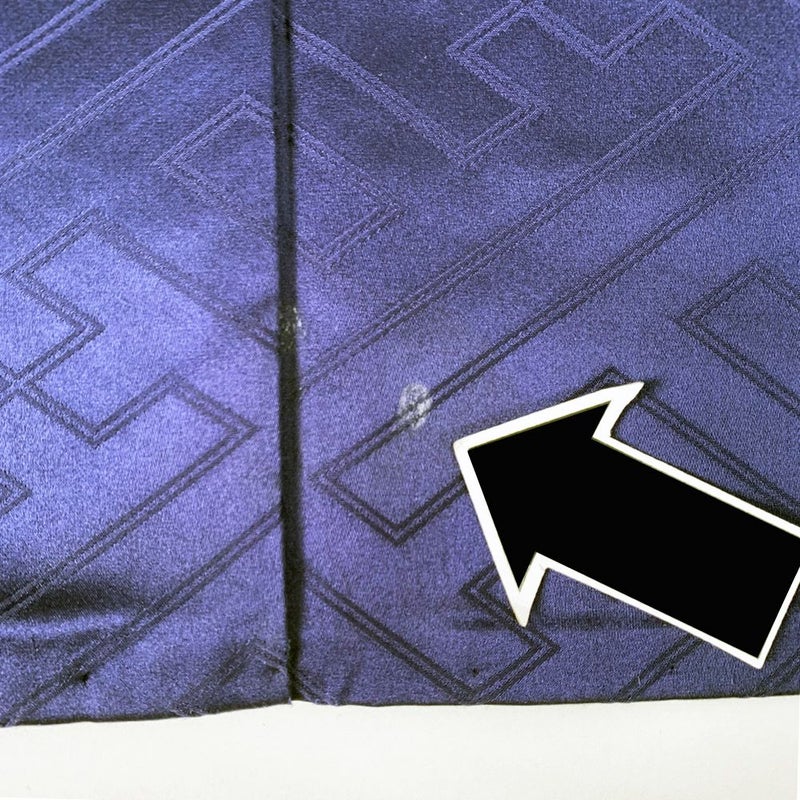 【状態ランクA】後ろ身頃の花の白い箇所に汚れ、八掛に汚れ