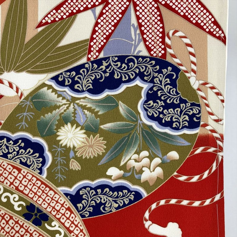 【色柄】赤色 マルチカラー フォーマル 金彩 鞠 組紐 四季花