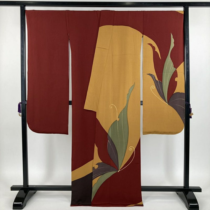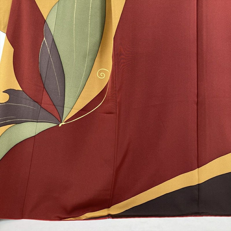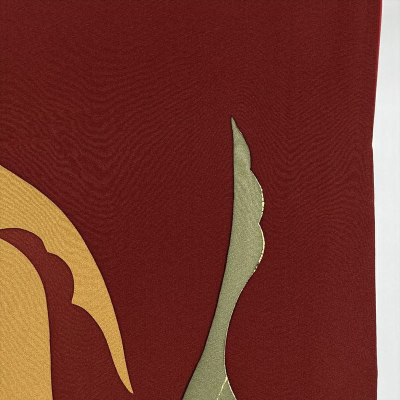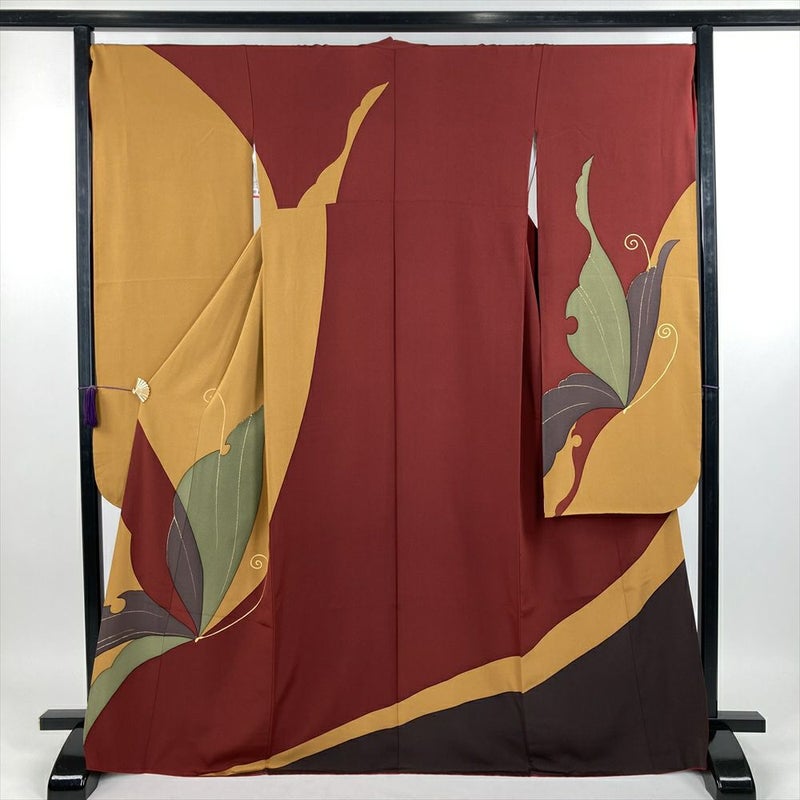 【色柄】赤 金茶 臙脂色 フォーマル ちりめん 染め 金彩 蝶