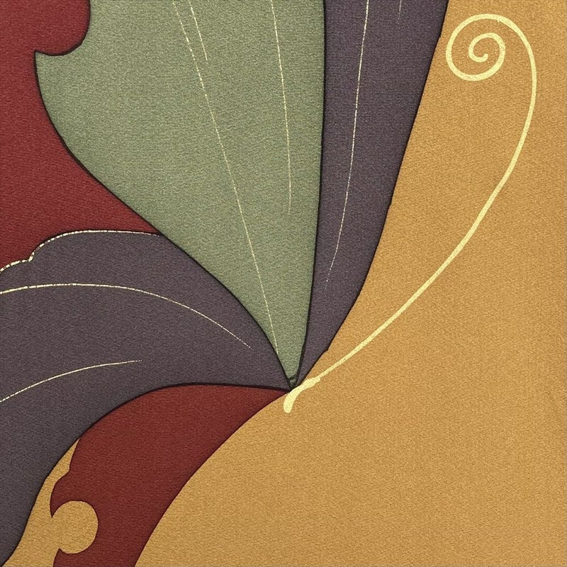 落ち着いた色合いながらも、華やかさを失わず、大人の女性の品格を際立たせます。古典的な美しさとモダンなデザインが融合した一枚です。帯を主役にしたコーディネートも◎。