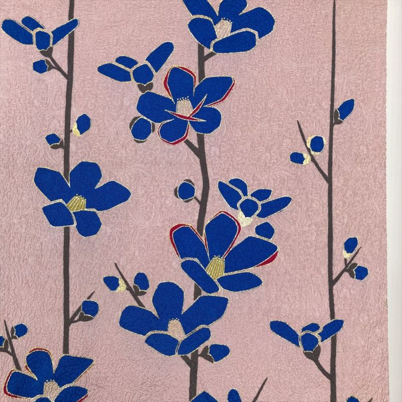 【色柄】ピンク グレー 地紋織り ぼかし染め 金彩 梅