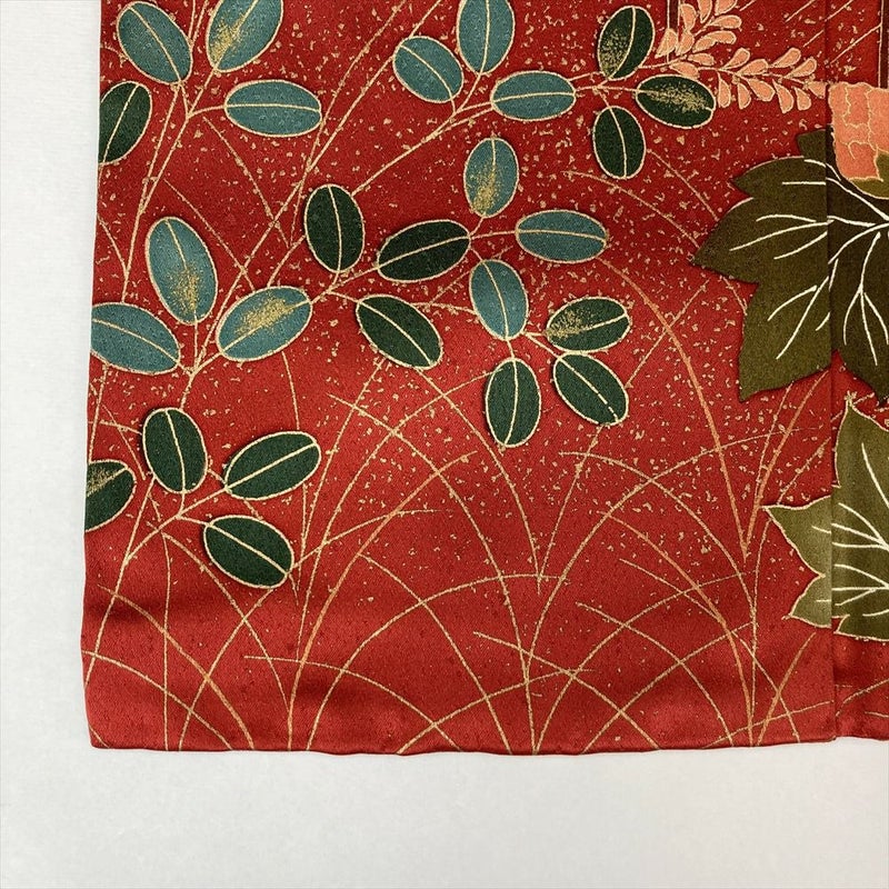 【色柄】赤 金彩 刺繍 霞取り 四季の草花 蝶