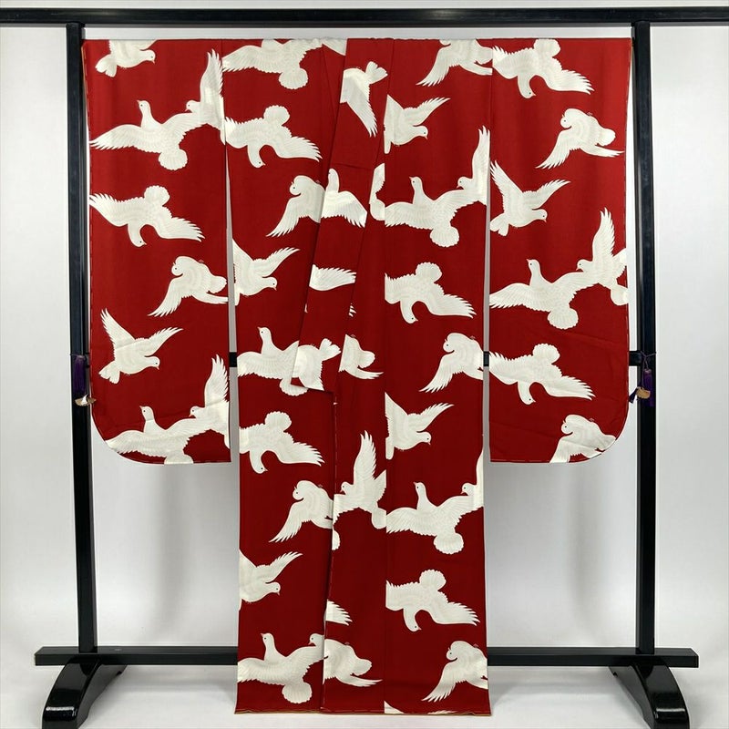 (中古) 振袖 赤色 フォーマル 鳩 袷【身丈】163cm【裄丈】68cm