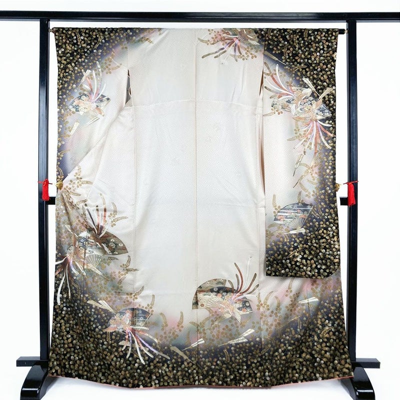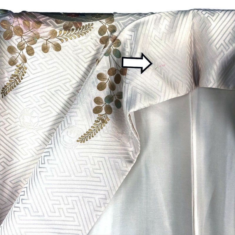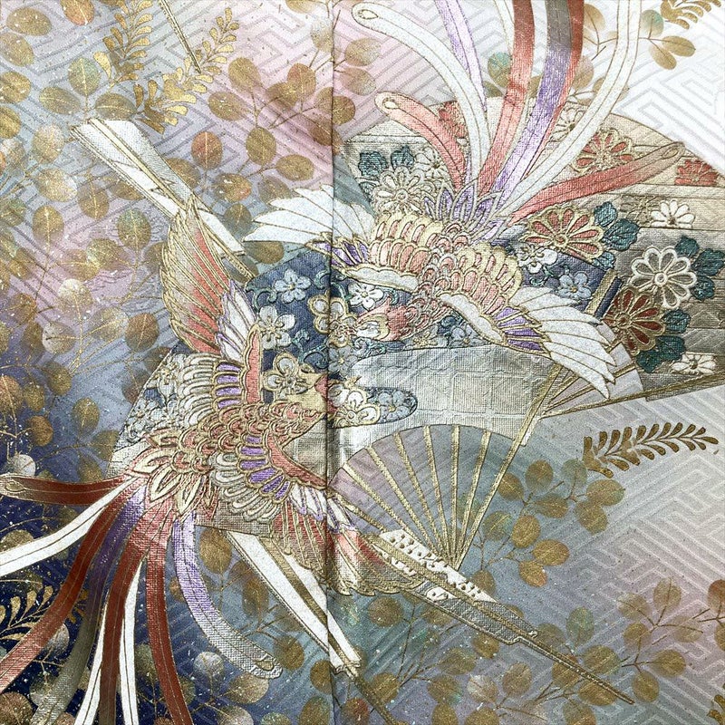 (中古)振袖 白 金彩 扇子 鳳凰 萩 袷 M【身丈】161.5cm【裄丈】64.5cm