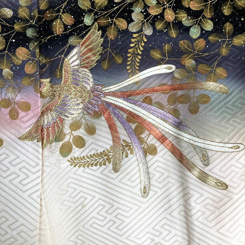 鳳凰は、古来より吉祥の象徴とされ、平和と繁栄をもたらす神聖な生き物として尊ばれてきました。その優雅な姿は、着る人の品格を高め、周囲を魅了します。