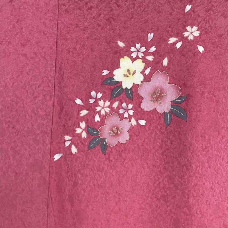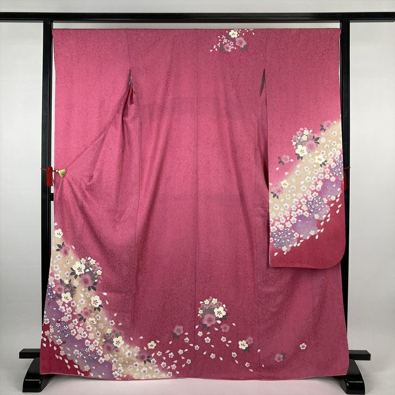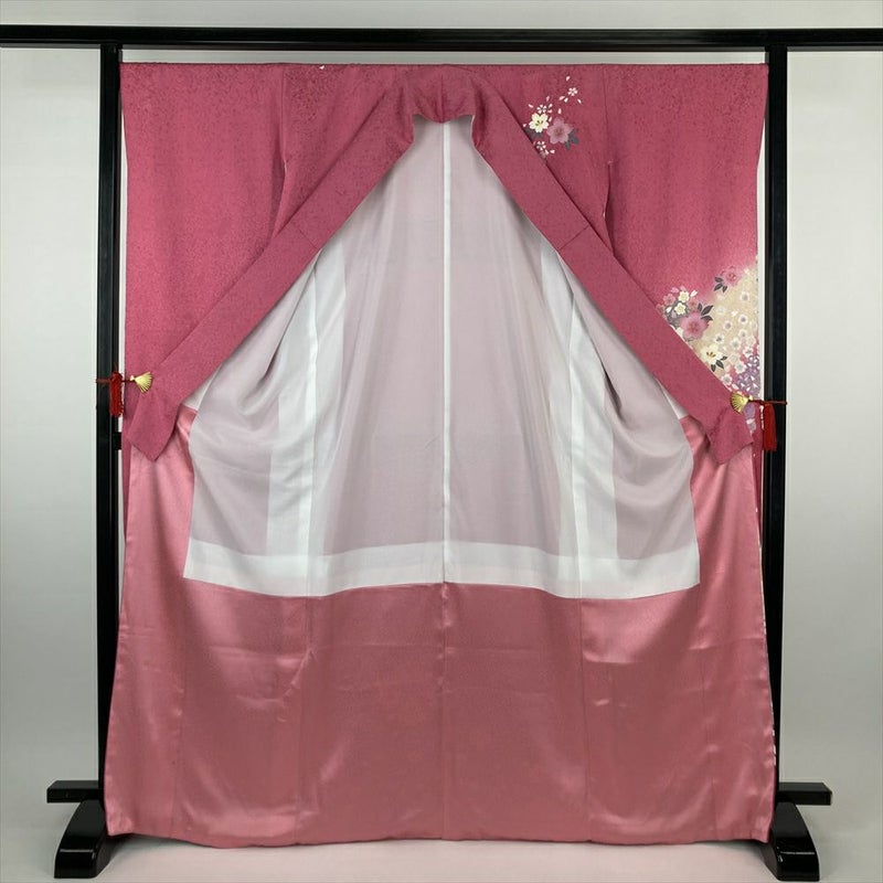 (中古)振袖 ピンク フォーマル 地紋織り ぼかし染め 金彩 桜 梅 袷 M【身丈】164.5cm 【裄丈】68cm