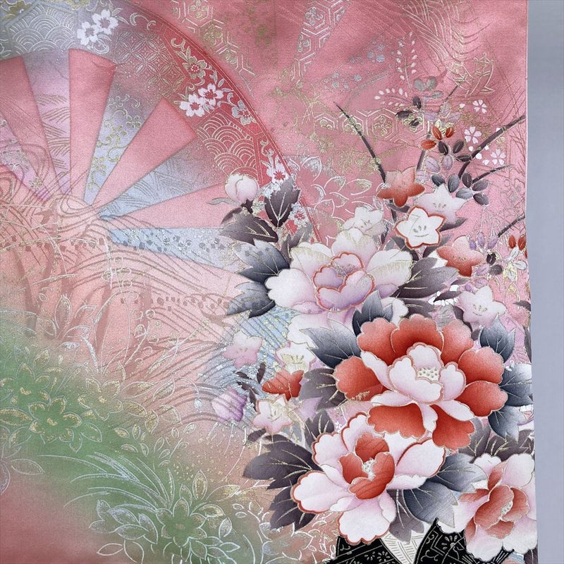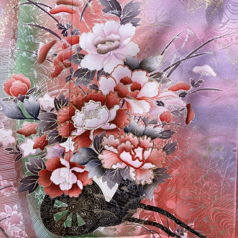 【色柄】ピンク色 フォーマル 地紋織り 染め 金彩 刺繍 花車